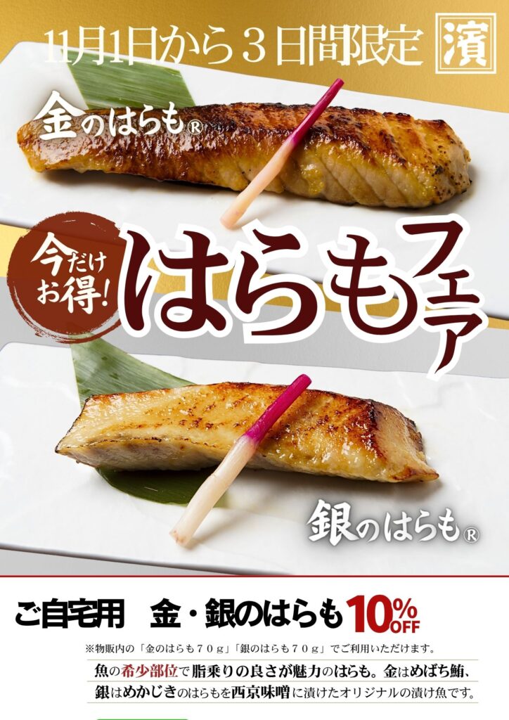 本日11月1日(土)から11月3日(月)まで、店頭金のはらも・銀のはらも商品が10%OFFになるキャンペーンを開催しております!