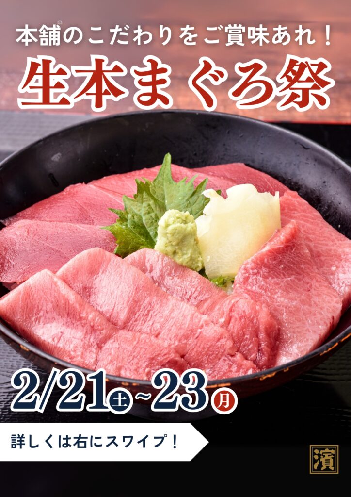 2026.02.21 【本舗のこだわり!生本まぐろ祭🐟✨2/21から3日間限定】 【本舗のこだわり!生本まぐろ祭🐟✨】 2/21(土)からの3連休限定で生本マグロ祭を開催します!極上のまぐろをお得に楽しめるチャンスです! 売り切れ前に、ぜひご賞味あれ✨※数量限定・売り切れ次第終了となります。